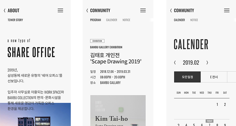 밤부컬렉션 웹페이지를 처음 방문한 사용자에게도 인상적인 느낌을 전달하도록 디자인하였습니다.